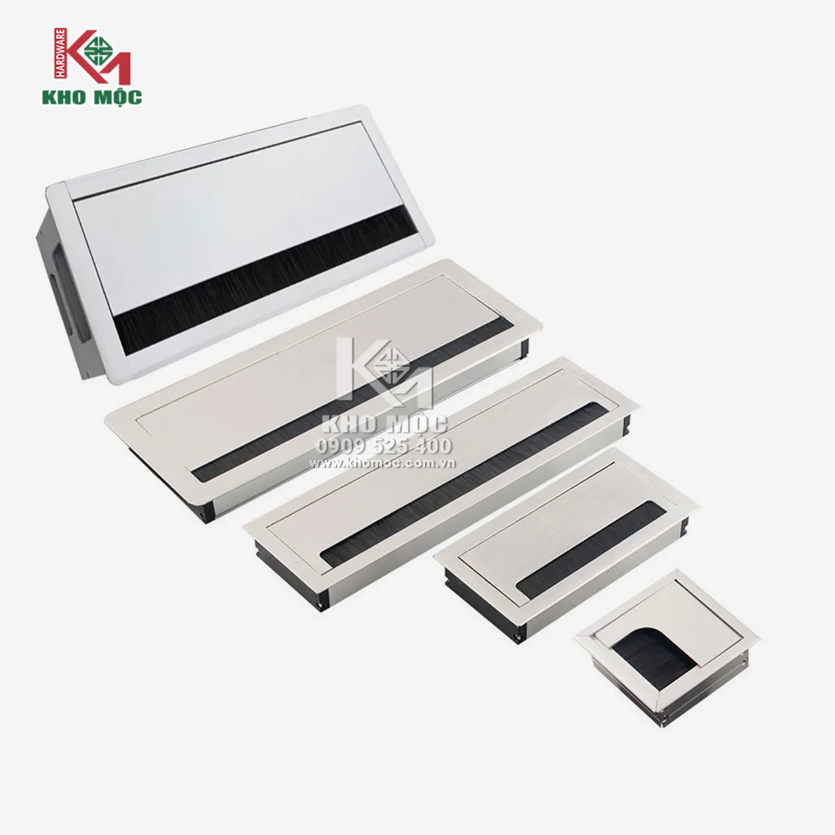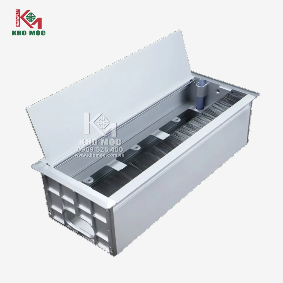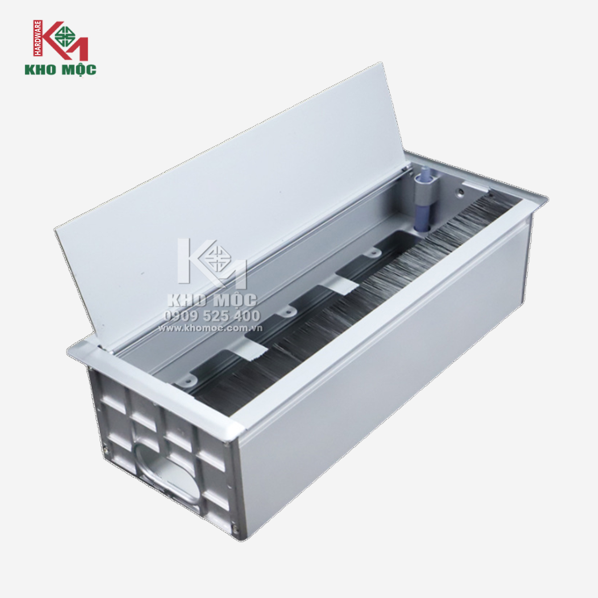 Sản phẩm hộp nắp vuông hợp kim nhôm cao cấp lắp đặt các vị trí luồn dây điện cho bàn làm việc.
