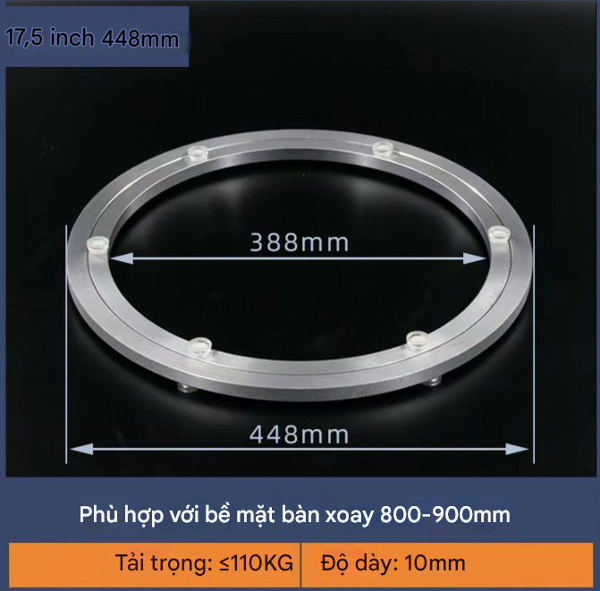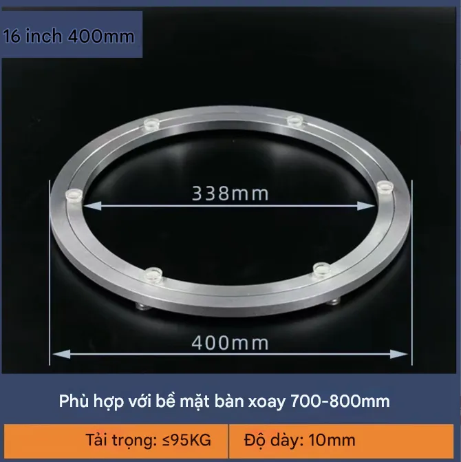 Phụ kiện mâm xoay bàn ăn được làm bằng chất liệu nhôm hợp kim cứng cáp, không gỉ, chịu tải cao.