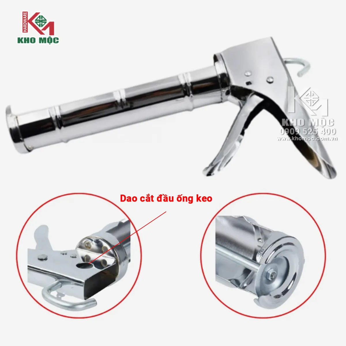 Cò bóp được làm bằng inox chắc chắn, linh hoạt giúp bạn bơm keo một cách nhẹ nhàng, không tốn quá nhiều sức lực