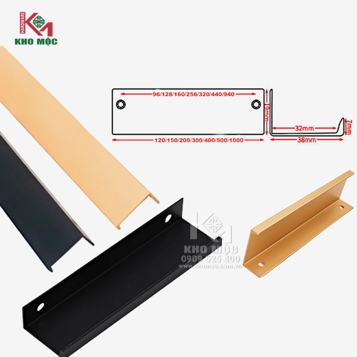 Tại Kho Mộc, chúng tôi có bán tay nắm cửa tủ nhôm 711 theo các kích thước sau: 96mm, 128mm, 160mm, 400mm, 500mm, 600mm và 1000mm. Mỗi loại kích cỡ sẽ có mức giá cả khác nhau. Hiện sản phẩm đang được sale với mức giá rất mềm. Quý khách nên đặt ngay để sở hữu một chiếc tay nắm cửa tủ áo nhôm 711