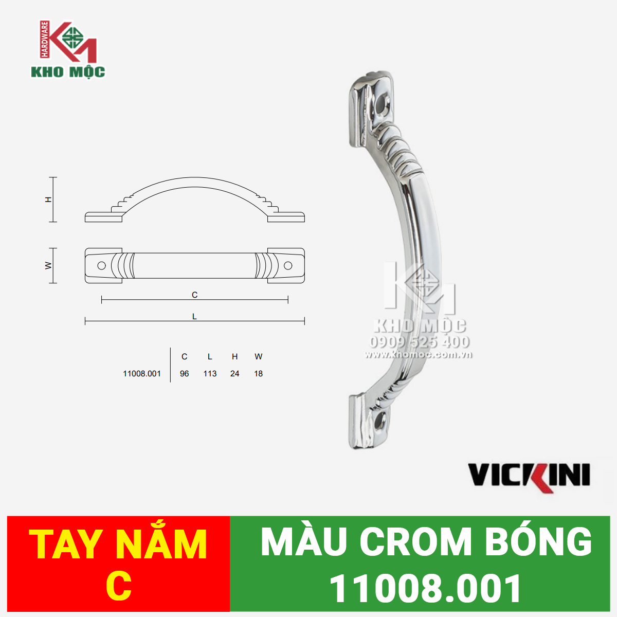 Tay tủ VICKINI 11008 CP Vít Ngoài
