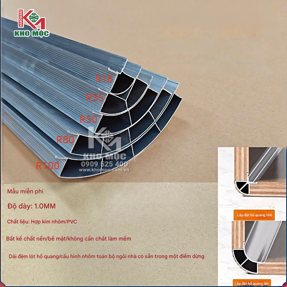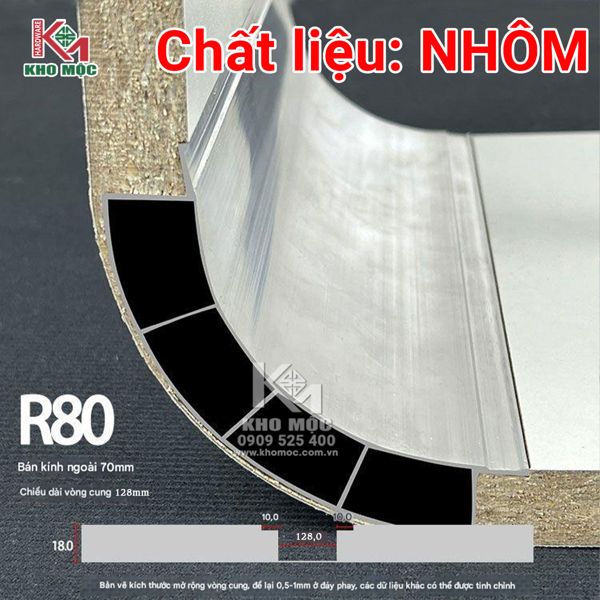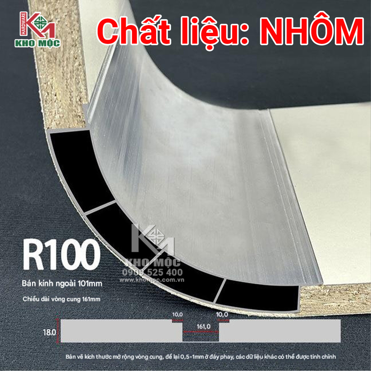 Đây là loại thanh dưỡng có bán kính cong của góc bo là 18mm. Với đường cong nhỏ, góc bo R18 thường được ứng dụng để bo cạnh kệ, bàn,… giúp tạo ra các đường bo tinh tế, thẩm mỹ.