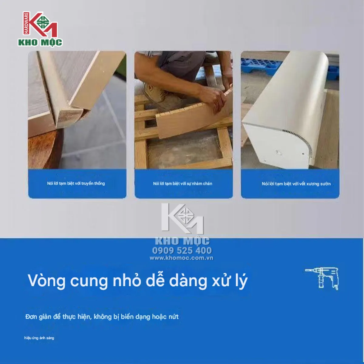 Ngoài các phương pháp truyền thống như: uốn cong bằng cắt rãnh uốn, dùng mũi phay bo cong hay dùng thanh dưỡng gỗ thì hiện nay, việc áp dụng thanh dưỡng nhựa bo cong được xem là giải pháp bo cong hiệu quả nhất. Không chỉ mang lại hiệu quả cao trong việc bo cong, mà thanh nhựa bo cong còn đảm bảo độ bền bỉ vượt trội, đáp ứng nhu cầu sử dụng lâu dài.