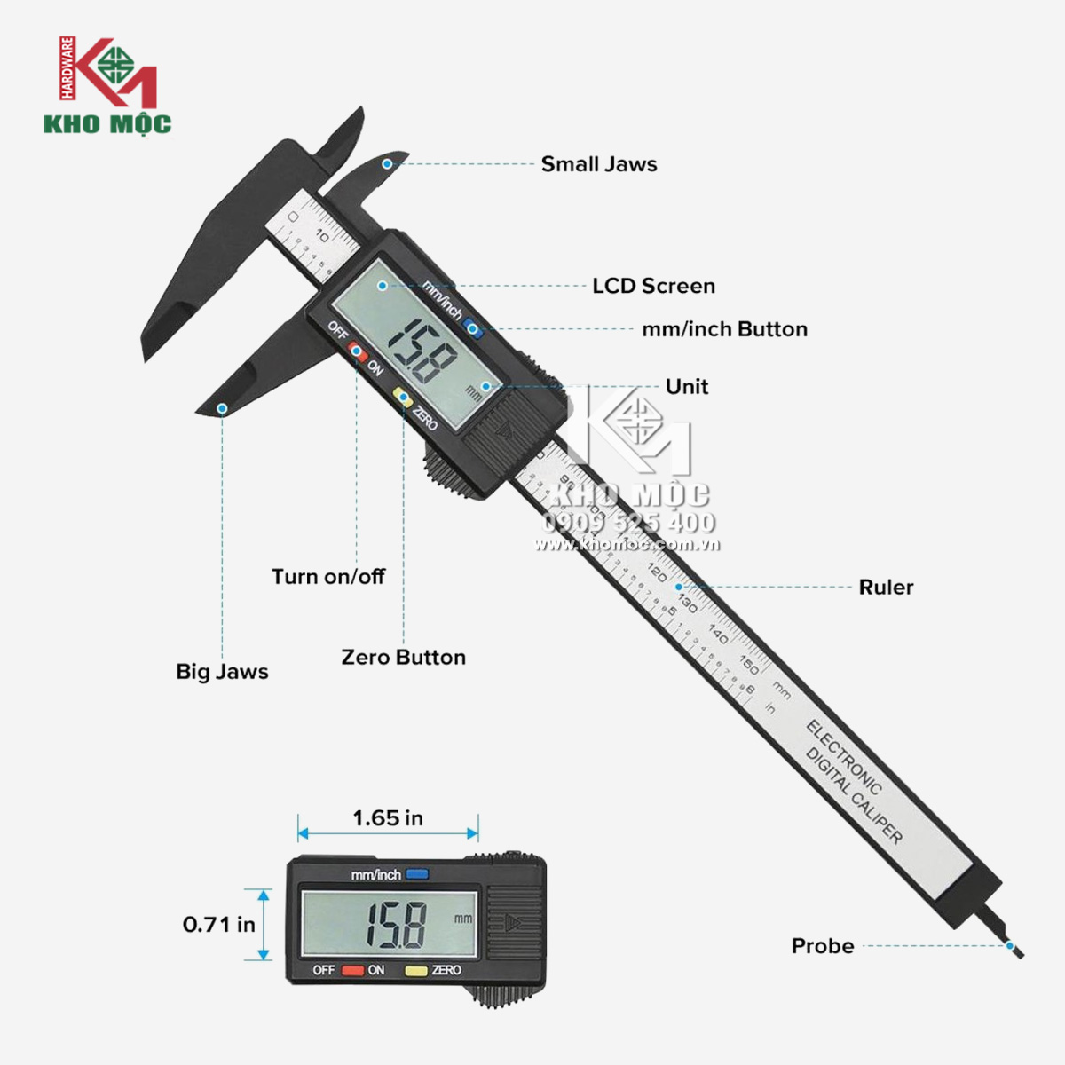 Với khả năng chuyển đổi linh hoạt giữa mm và inch, bạn có thể thực hiện các phép đo một cách dễ dàng và chính xác.