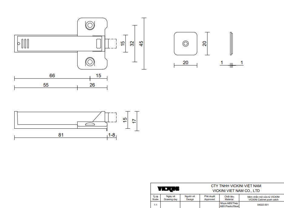 Tip On VICKINI 04022.001 GRPR MÀU TRẮNG nhấn mở cửa tủ