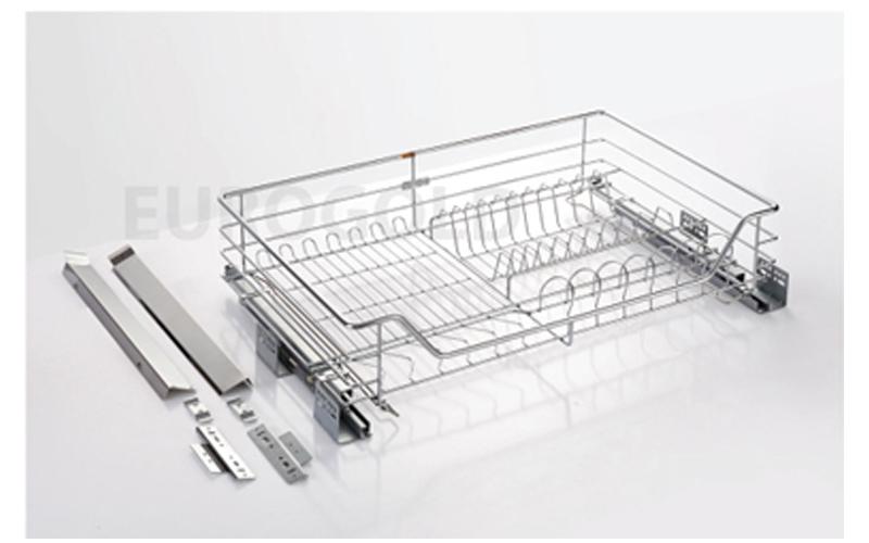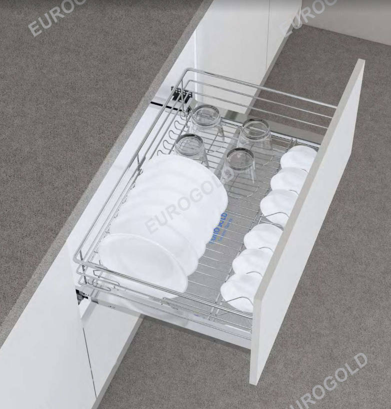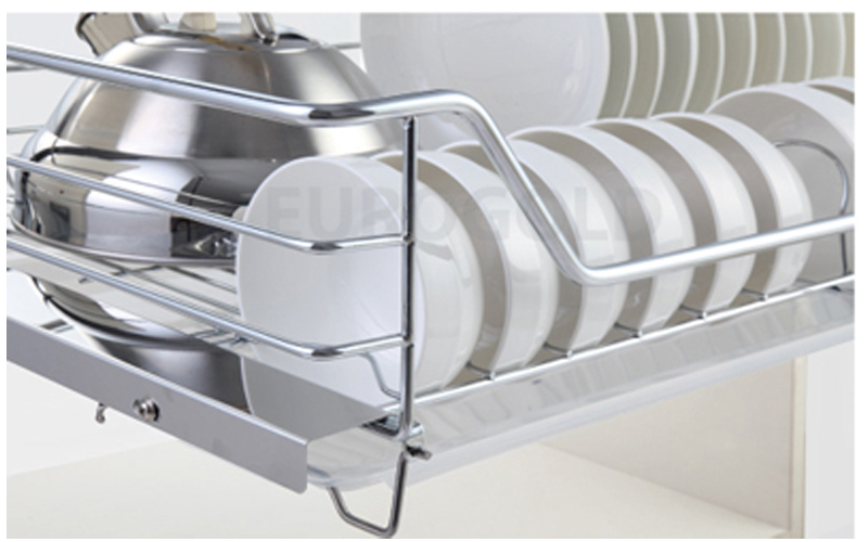 giá bát đĩa inox nan âm tủ gắn cánh ray giảm chấn Eurogold