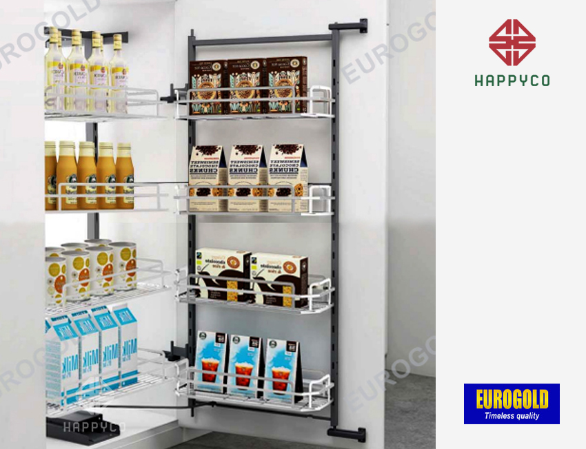 Đập hộp phụ kiện tủ bếp tủ kho nan dẹt 4 tầng cánh mở EPL80445 chính hãng tại HAPPYCO
