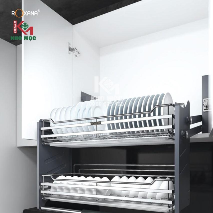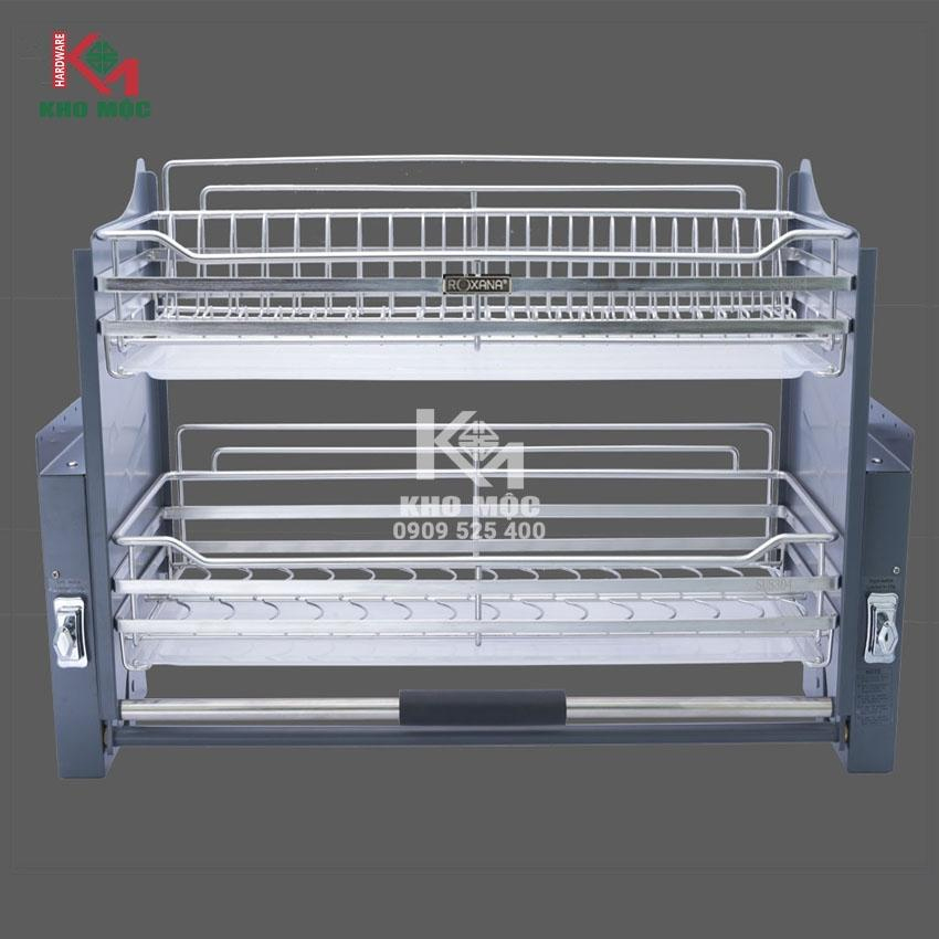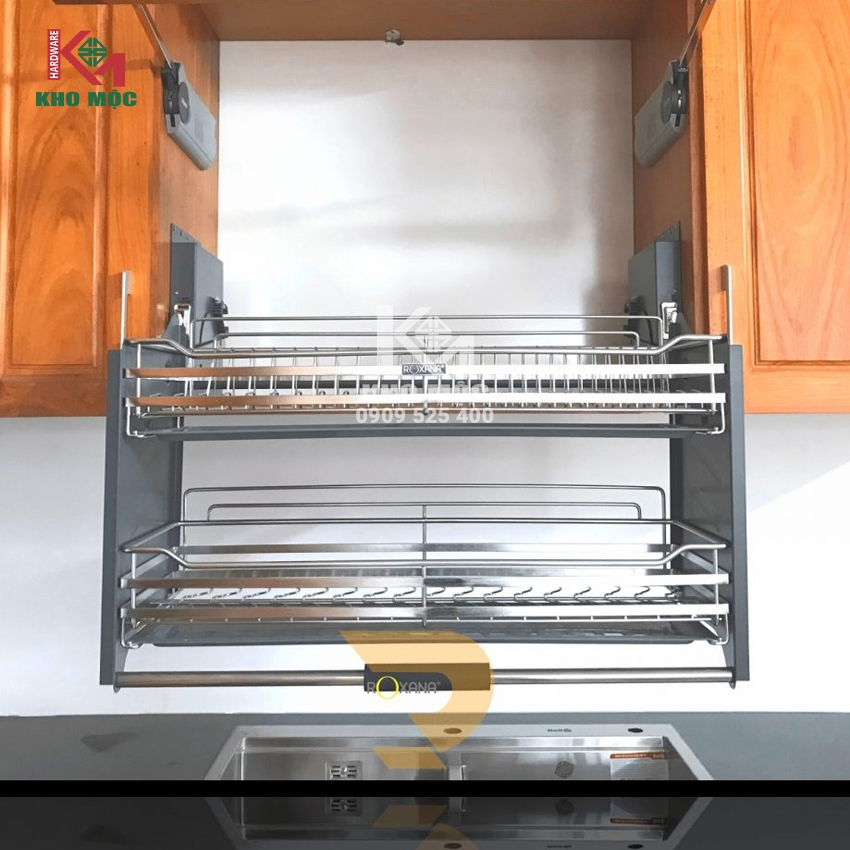 Thông số kỹ thuật Giá Chén Bát Nâng Hạ Di Động 2 Tầng ROXANA INOX MỜ Mã R015