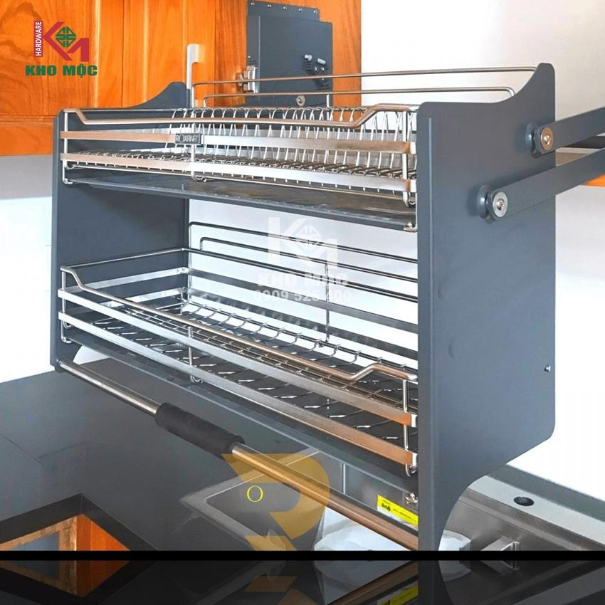 Hệ thống nâng hạ: Giúp người sử dụng dễ dàng nâng hạ giá chén bát và sắp xếp đồ dùng bếp ở hai tầng khác nhau. Hệ thống nâng hạ được thiết kế với khóa an toàn để đảm bảo tính ổn định và an toàn trong quá trình sử dụng.
