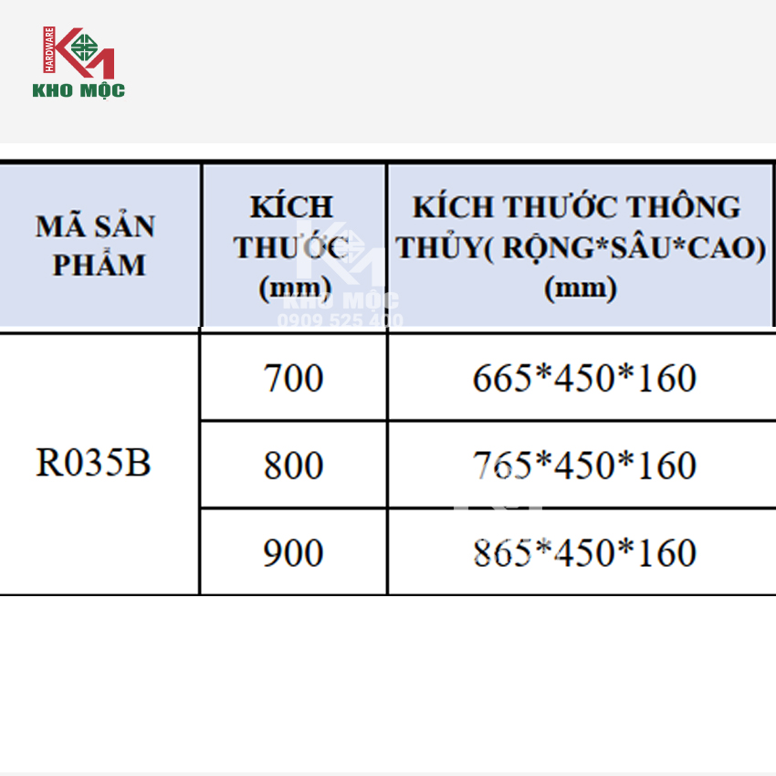 Thông Số Kỹ Thuật Giá chén bát tủ dưới nan dẹt, cánh mở, ray âm giảm chấn ROXANA MÃ R035B