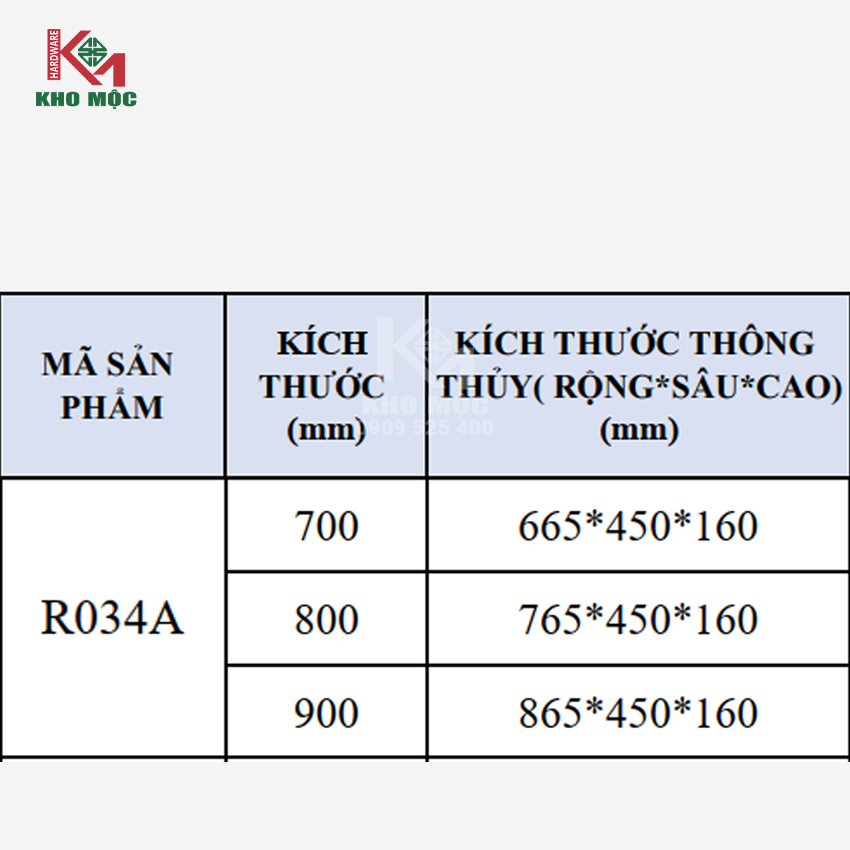 Kích thước: có nhiều kích thước khác nhau để phù hợp với các kích thước khác nhau của tủ bếp.