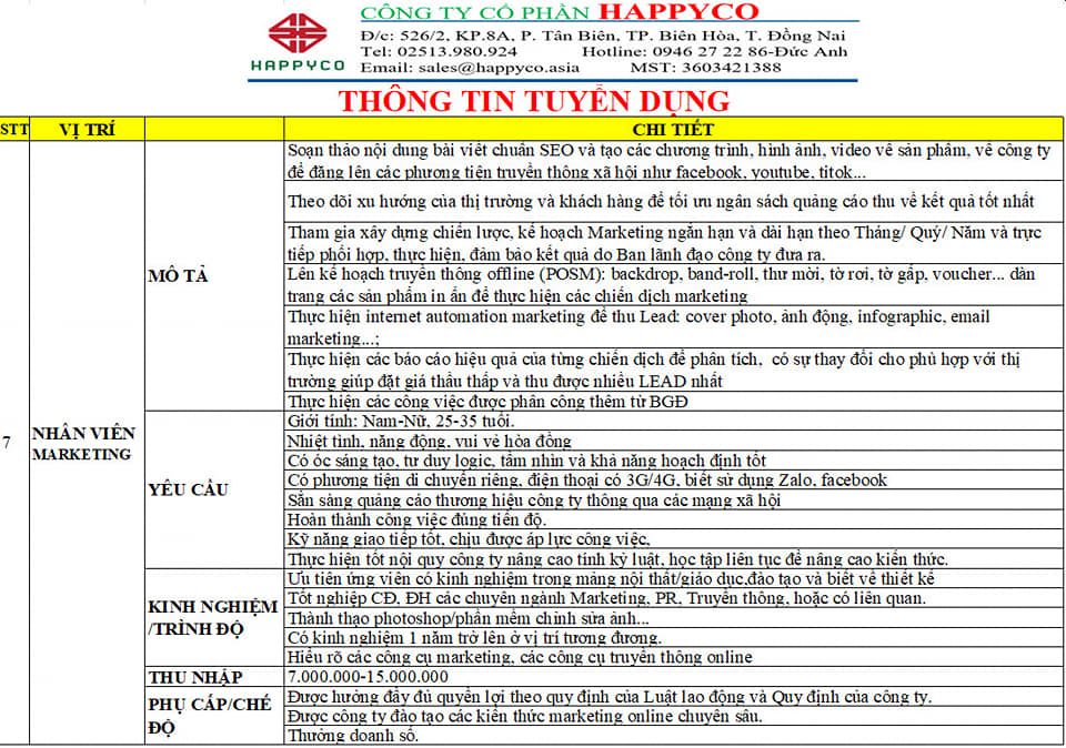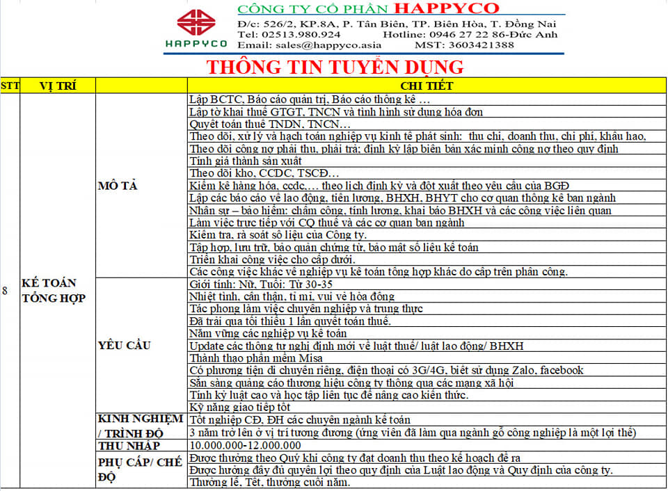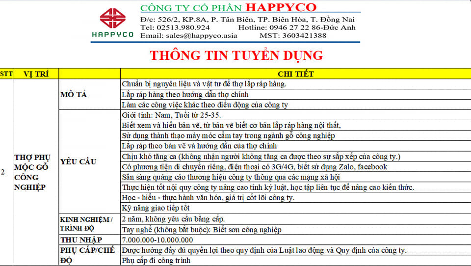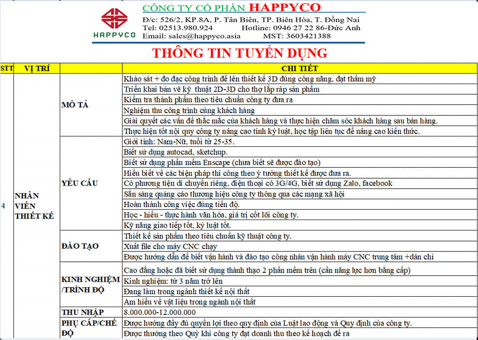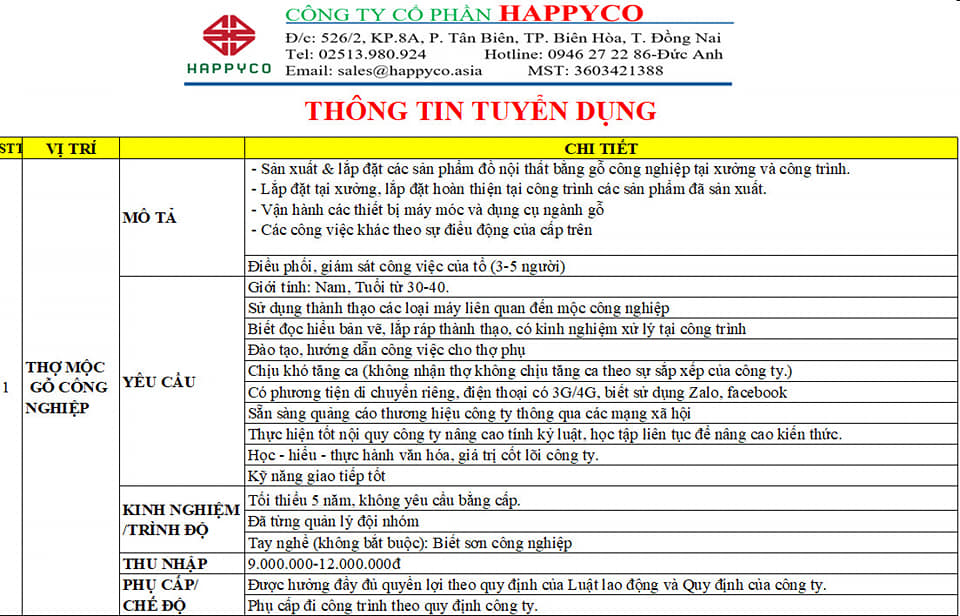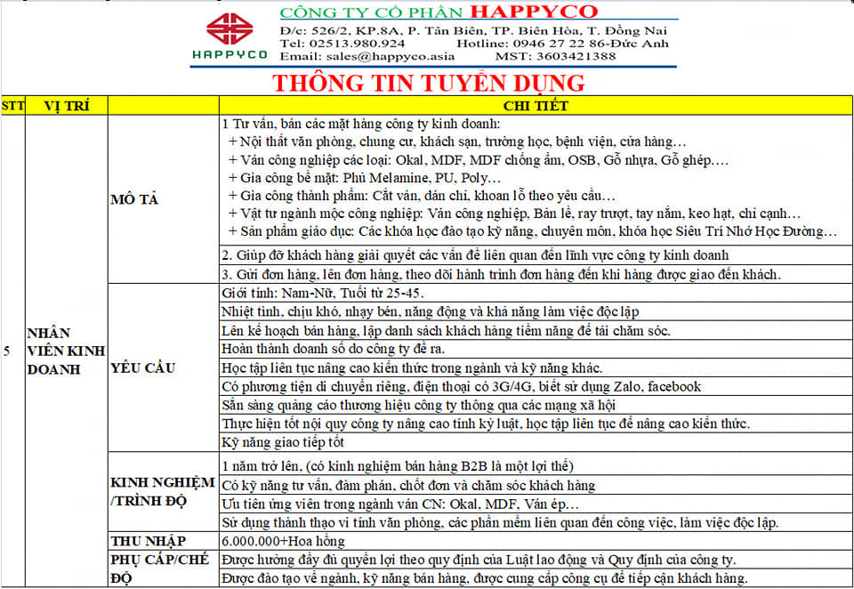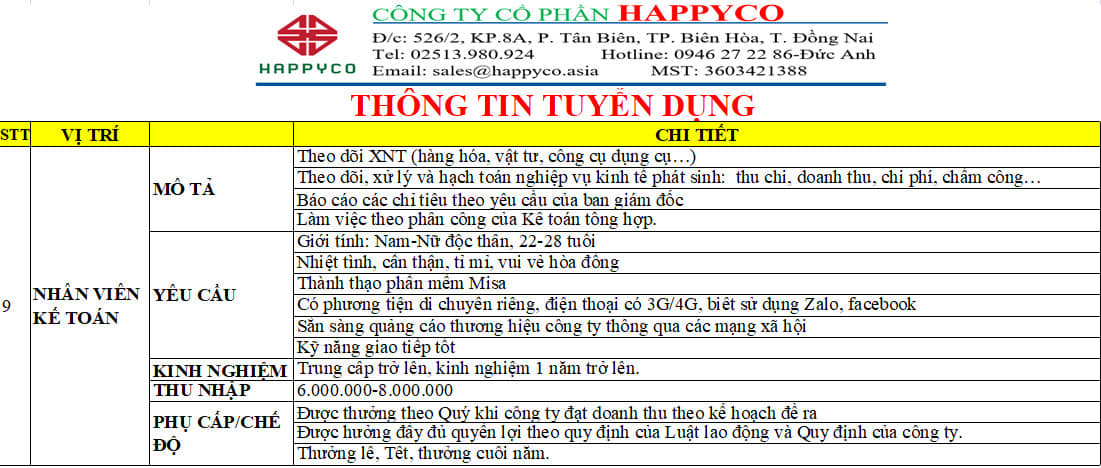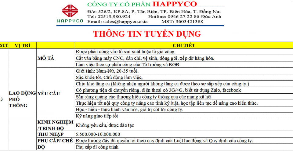 CTY CỔ PHẦN HAPPYCO-TUYỂN DỤNG